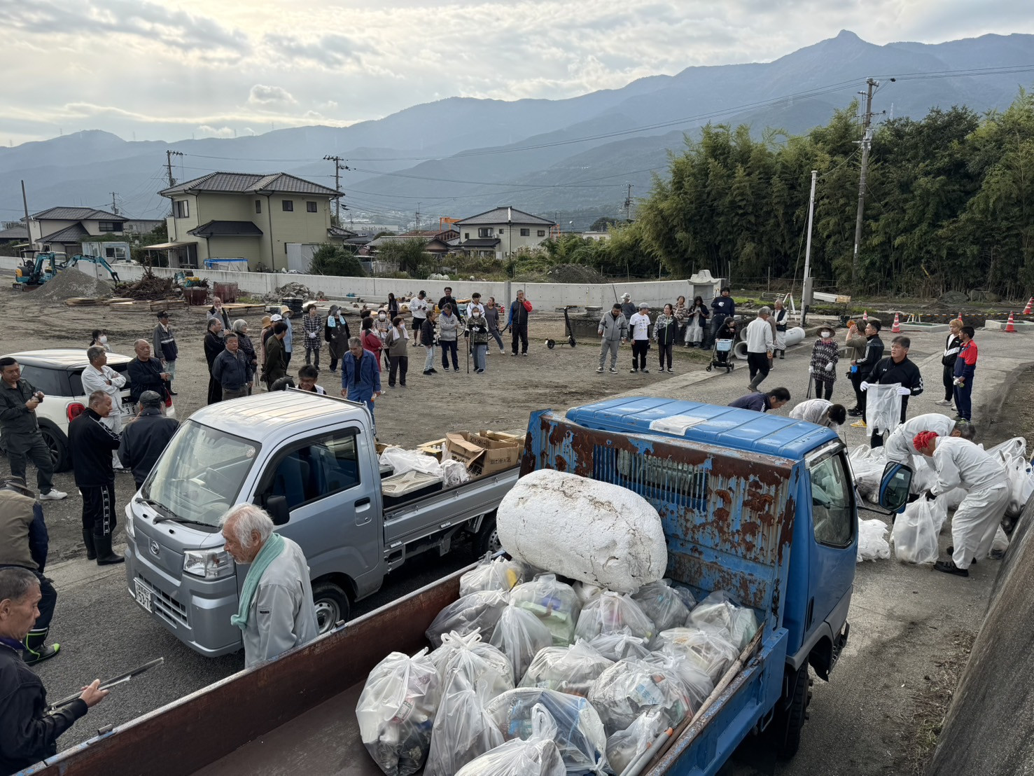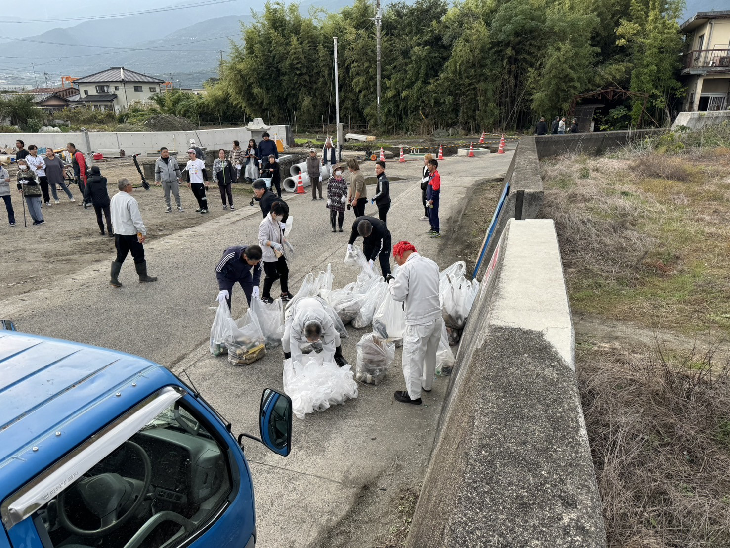 午前7時~大地川上流の清掃奉仕を森首自治会の皆様共同ガスの皆様のご協力を得ながら約40名程で実施いたしました。